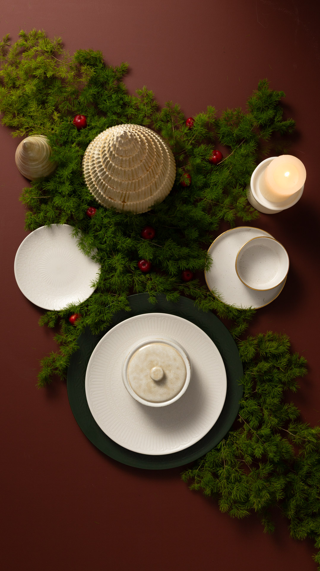 Para a época festiva, criamos peças de mesa que celebram o que realmente importa: encontros, alegria e uma abordagem responsável perante o mundo que partilhamos.