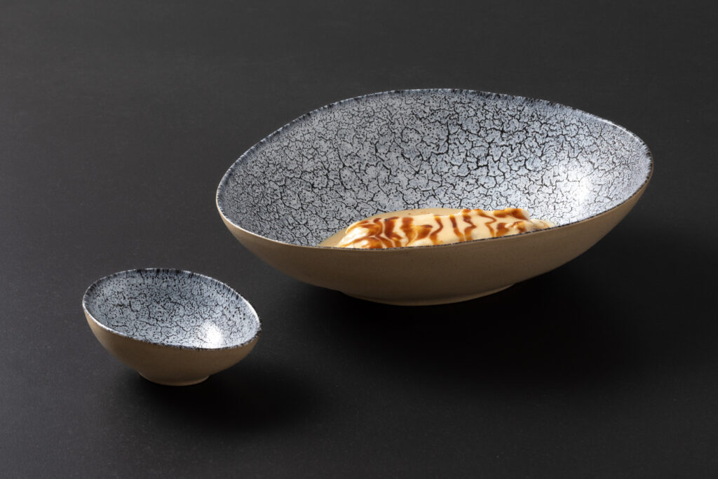 Aida distingue-se pelo seu acabamento texturizado, que cria um efeito visual de finas fissuras, semelhante à pedra craquelada. As suas peças, ligeiramente assimétricas, conferem-lhe um carácter único.